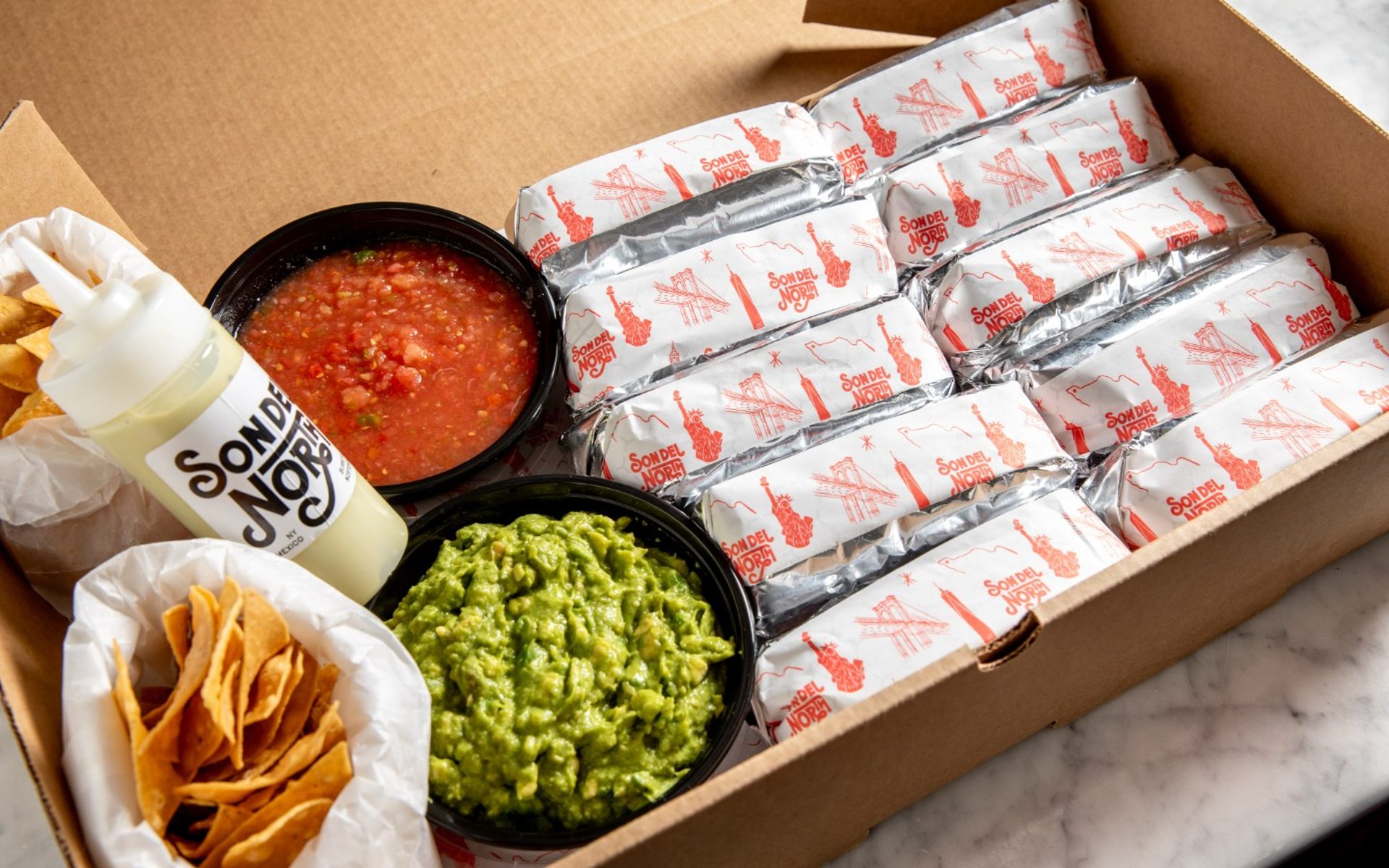 Our catering packs include our signature burritos, totopos, guacamole, and salsas. Great for offices, birthdays, and family gatherings. Pick up at either shop or contact us for delivery options.